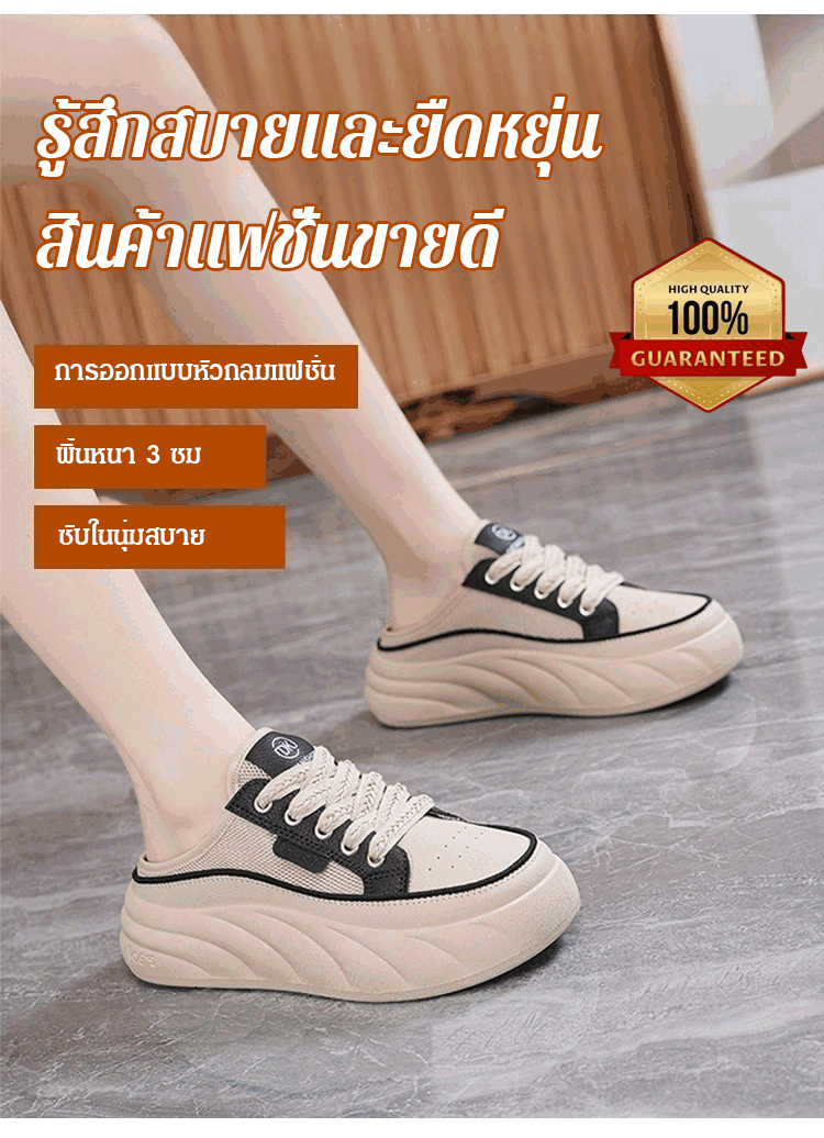 รองเท้าสลิปออนพื้นหนาแฟชั่น