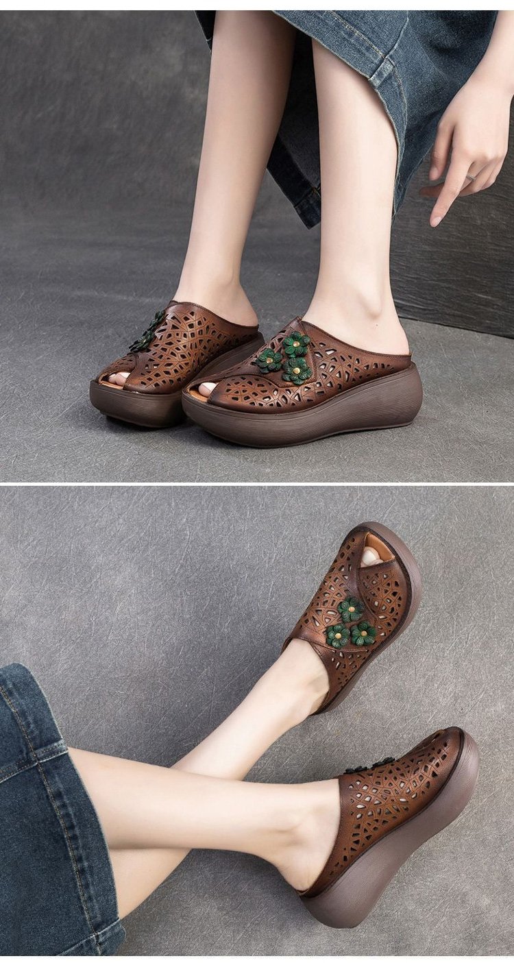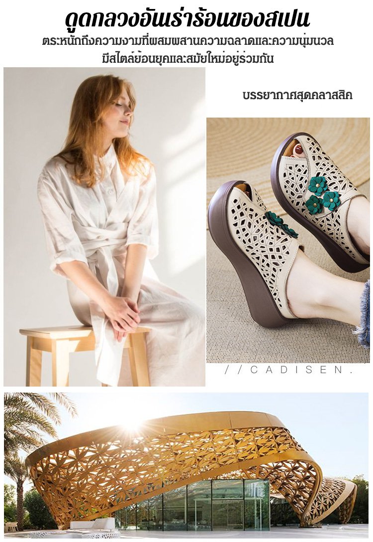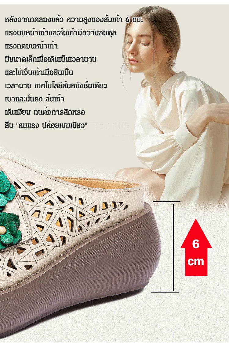 รองเท้าแตะพื้นหนา เปิดหัว หนังนุ่มคุณภาพสูง สไตล์ชาติพันธุ์