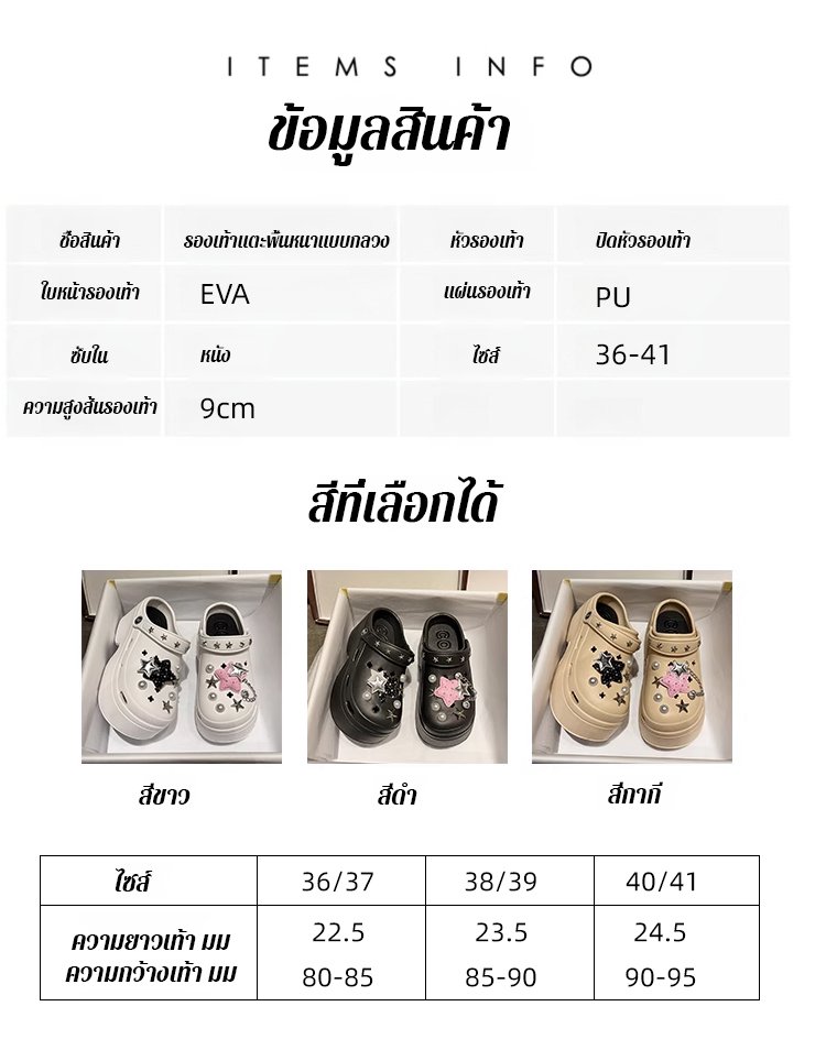 รองเท้าแตะพื้นหนาแบบกลวงลายดาวห้าแฉก