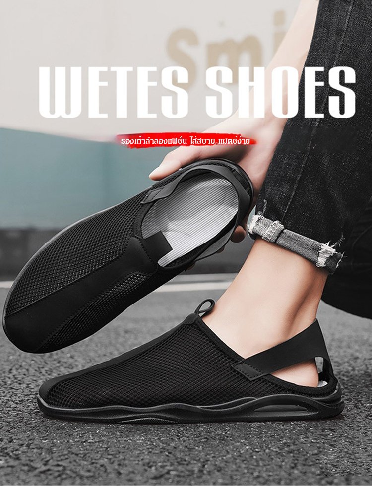 รองเท้าผ้าตาข่ายฉลุรูผู้ชาย ระบายอากาศ รุ่นบาง
