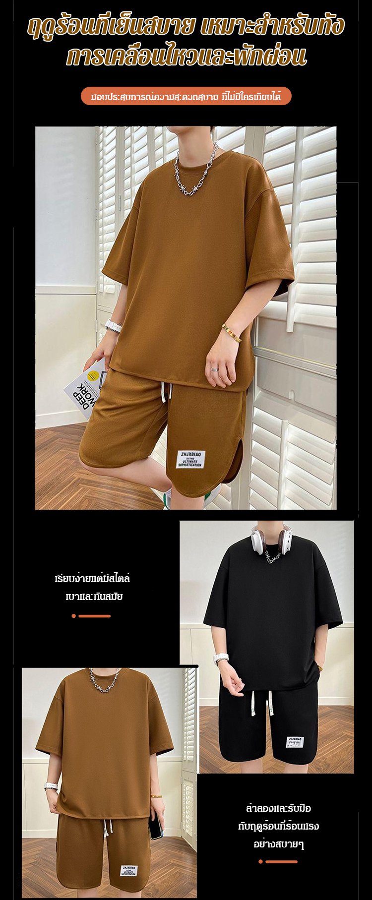 ชุดกีฬาลำลอสีทึบของผู้ชาย